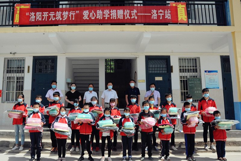 2020年5月27-29日,“洛陽開元筑夢行”愛心捐助活動分別在欒川秋扒鄉中心小學、洛寧故縣中心學校、宜陽蓮莊鎮政府舉行,共資助了61名貧困學生,累計捐款捐物近4萬元;