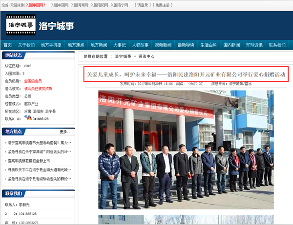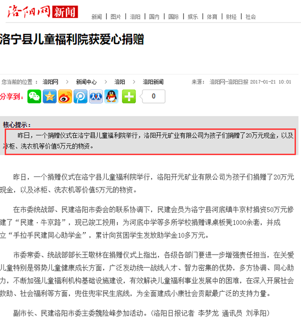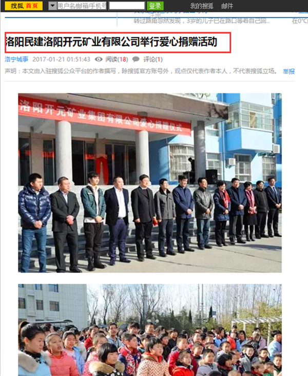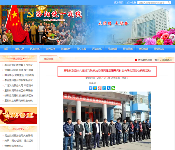 弘揚社會正能量 愛心事業美名揚——洛陽開元礦業集團善舉引起國內各大媒體高度關注