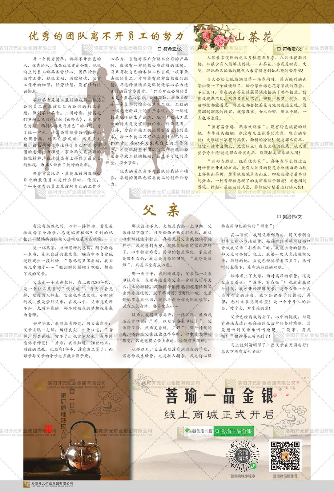 洛陽開元礦業集團有限公司簡介洛陽開元礦業集團有限公司,始成立于2006年,位于洛陽市開元大道269號。集團旗下共有十余家全資子公司,業務涉及有色金屬礦山開發、礦產品購銷與進出口貿易、房地產開發、文化藝術、企業管理與咨詢、資本投資等多個領域。2024年,集團公司銷售總額達7.8億元。民建河南省委委員、民建河南省委企業委副主任、民建洛陽市委委員、企業委主任、洛陽民建企業家協會會長許明月是公司創始人,現任洛陽開元礦業集團有限公司董事長。在礦業領域,洛陽開元礦業集團擁有多家實力雄厚的子公司:貴州開元礦業有限公司探、采礦權面積共11.33平方公里;興??h銅鑫礦業有限公司探礦權面積8.76平方公里,礦山資源潛力巨大;2021年,開元集團與盧氏中科礦業有限公司開展戰略合作。盧氏中科礦業有限公司專注于有色金屬的浮選、加工和銷售,擁有強大的技術支撐平臺,是集探、采、選、冶、研為一體的中大型綜合礦業企業。目前,盧氏中科王家河1000噸選礦廠已成功投產,雙河金礦、柳關欒盧鉛鋅礦相繼順利開工,樓房銀礦與圪老灣鉛鋅礦的深部探礦重大突破,標志著礦山版圖取得重大進展,為開元集團后續發展奠定了堅實基礎。在文化傳媒領域,洛陽市明月美術館通過豐富多樣的藝術展覽、學術研討和公共教育活動,努力打造一個集展覽、交流、教育、研究為一體的綜合性藝術平臺。此外,在金融投資領域,開元集團旗下的北京明峰資本管理有限公司專注于投資具有高增長潛力的優秀企業,特別是高科技、新能源、環保等新興產業,為客戶提供個性化的資產配置服務。在做好企業經營的同時,開元集團始終不忘企業的社會責任和家國情懷,以突出的愛心公益事跡,開展了一系列公益慈善活動:“民建林”公益事業通過“思源基金”“幫幫公益”線上公益平臺,與眾多愛心人士籌措資金20余萬元;資助541名貧困大學生共計270余萬元,推進“數字助力——河南AI人才培養”;捐款10萬元,馳援京津冀、黑龍江洪水地質災害……公司于2017年底被洛陽市慈善總會評為“洛陽慈善風云榜——十大愛心集體”。洛陽開元礦業集團有限公司秉承持續發展理念,憑借多年來良好的企業信譽與經營業績,與全國多家企業建立了良好合作關系,受到社會各界的一致好評,多次榮獲“納稅標兵”“先進企業”“招商引資模范企業”等榮譽稱號。回望來時路,開元人勠力同心,以“闖”的精神和“創”的勁頭,一路披荊斬棘,踏過千山萬水;展望新未來,開元人凝心聚力,不執于“舊”,無畏于“新”,秉承“勇于跨越,追求卓越”的企業精神,乘著國家高質量發展新征程的東風,跨過高山,越過大海,向著集團多元化、國際化的目標,逐夢遠航,跨越前行!